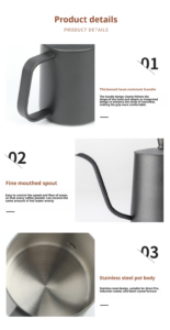304 Stainless Steel 1.0mm Thickness Coffee Pour-Over Kettle with Drip Handle and Spout, Narrow Spout Coffee Pot
